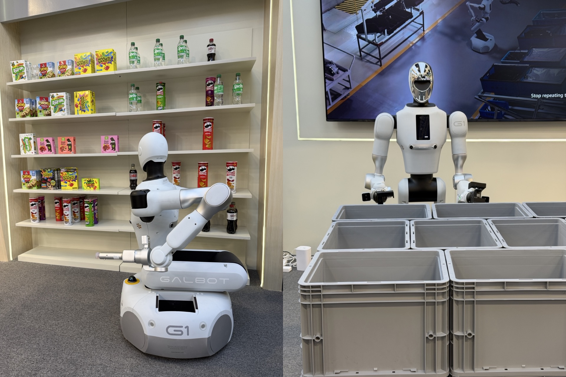 对于人形机器人,银河通用强调「实用主义」的技术应用路线。CES 2026,雷科技报道团就看到银河通用展位醒目的「AI-Driven Autonomous Robots, Born for Productivity(AI驱动的自主机器人,为生产力而生)」大标语。展位的机器人,则亮出了两大核心技能:其一是从货架取送商品,其二是搬运箱子,全流程自动化。