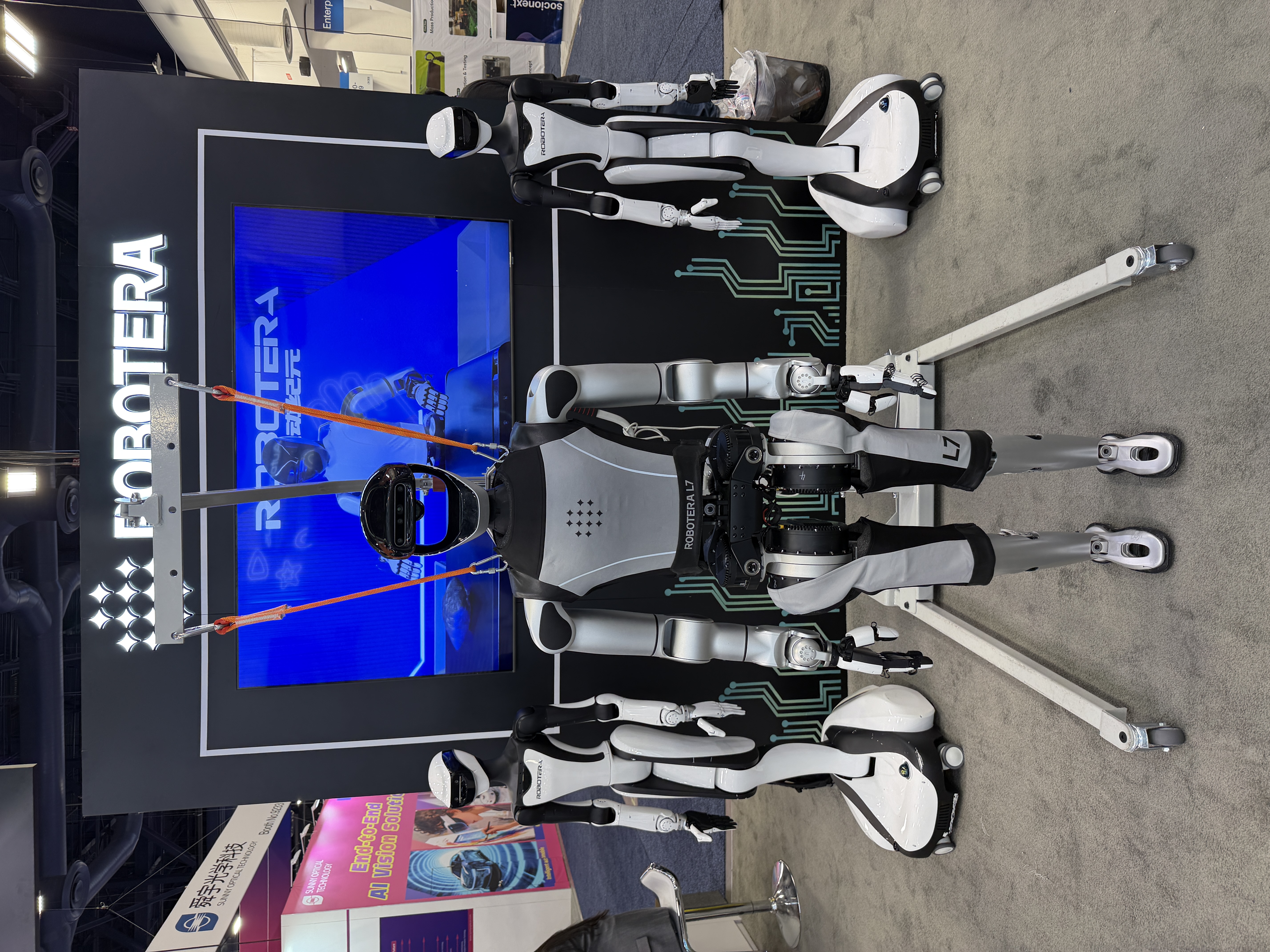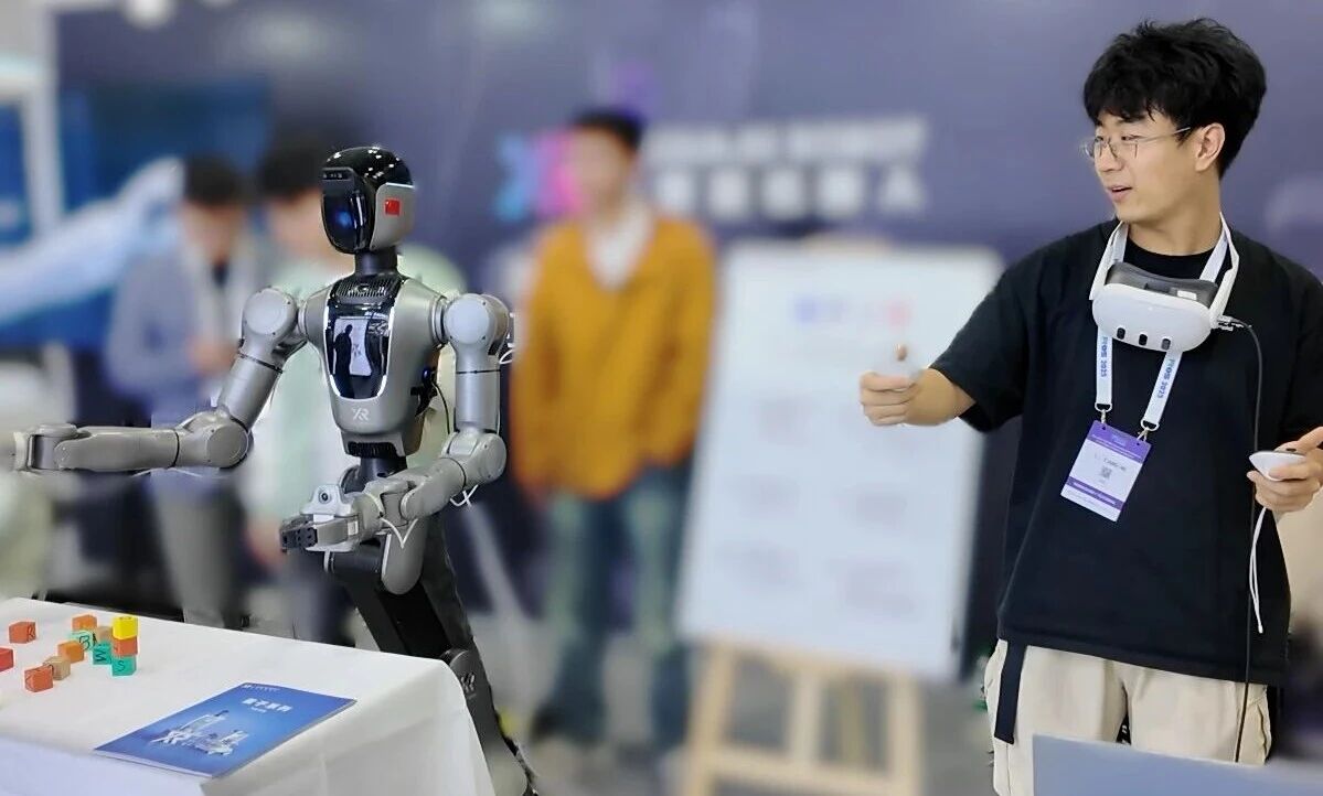 CES 2026,睿尔曼进行了「北京-拉斯维加斯」跨洋实时遥操演示,即通过构建「北京人形机器人数据训练中心-拉斯维加斯国际会展中心」的远程劳动力网络,使在北京的具身训练师可远程精准控制在CES展台的RealBOT轮式折叠机器人,执行「递送物品」「传递水果」等真实场景作业。